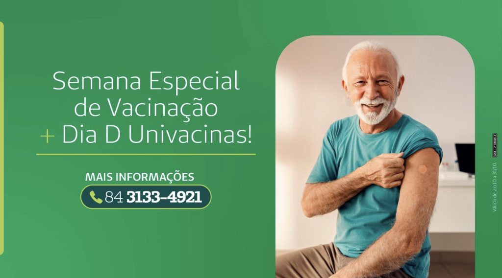 De 27 a 31 de outubro, a Unimed Natal junto com a Univacinas promove uma Semana Especial de Vacinação, com o objetivo de ampliar o acesso da população às vacinas e incentivar os cuidados com a saúde.